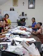 Ssvp Assumption PJ Conference members learning how to make recycled envelopes as part of a FINs Livelihood Empowerment Project